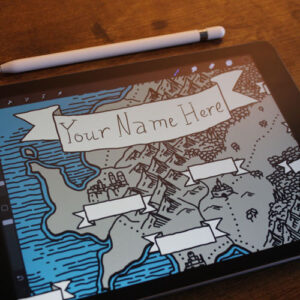 – Features: Elegant compass rose in the corner, large top scroll for your world’s name